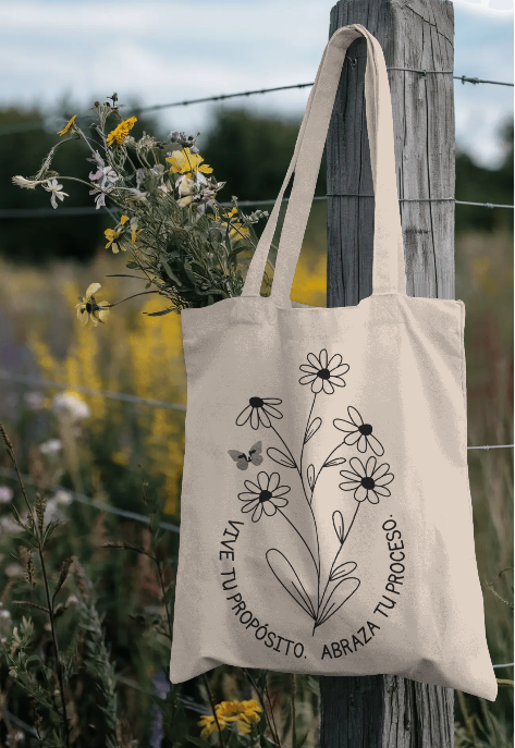 BOLSO DE TELA VIVE TU PROPOSITO. ABRAZA TU PROCESO.
